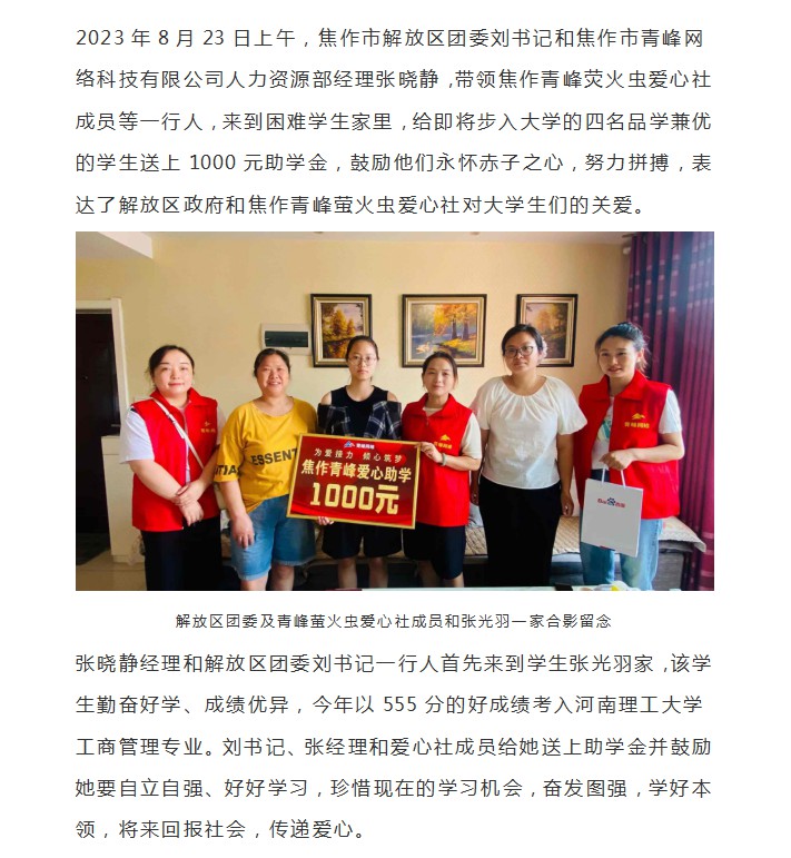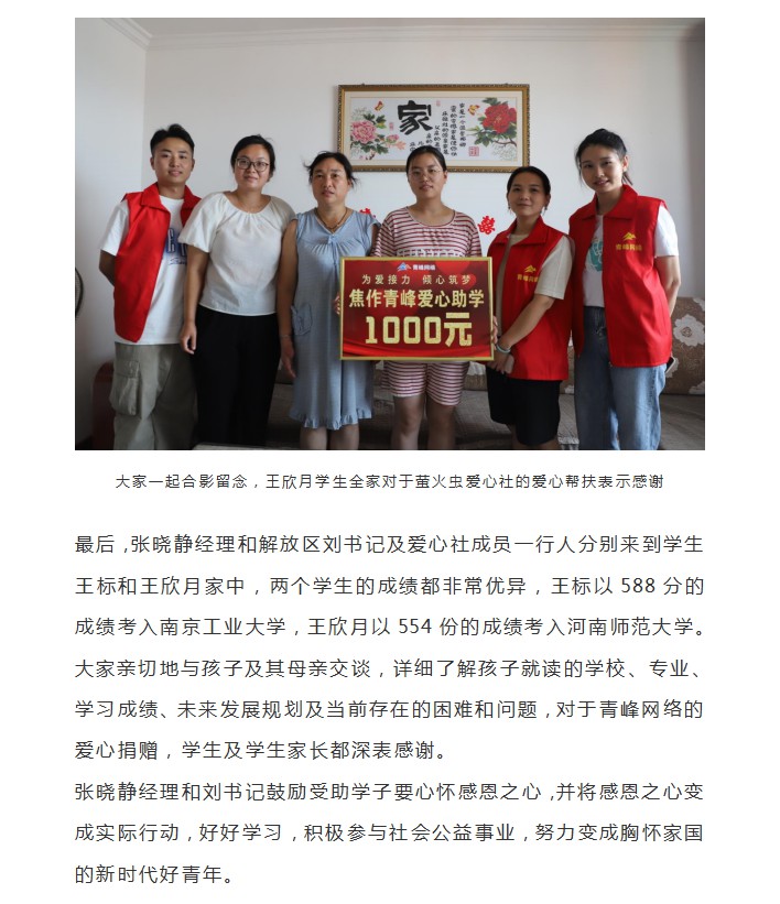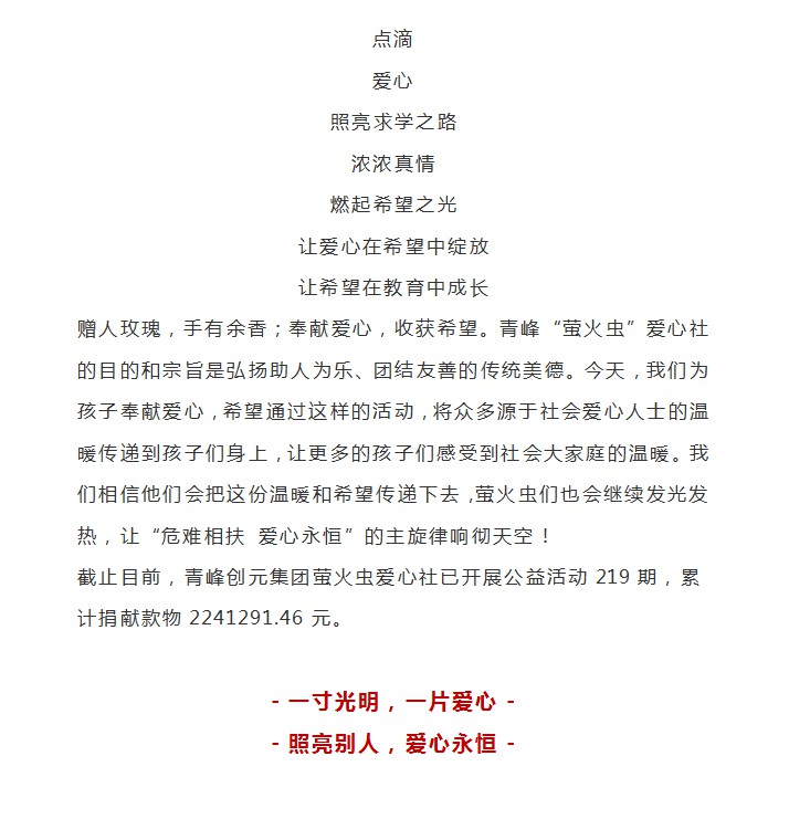 青峰助學(xué) 傾心筑夢(mèng)--青峰創(chuàng)元集團(tuán)螢火蟲愛(ài)心活動(dòng)第219期