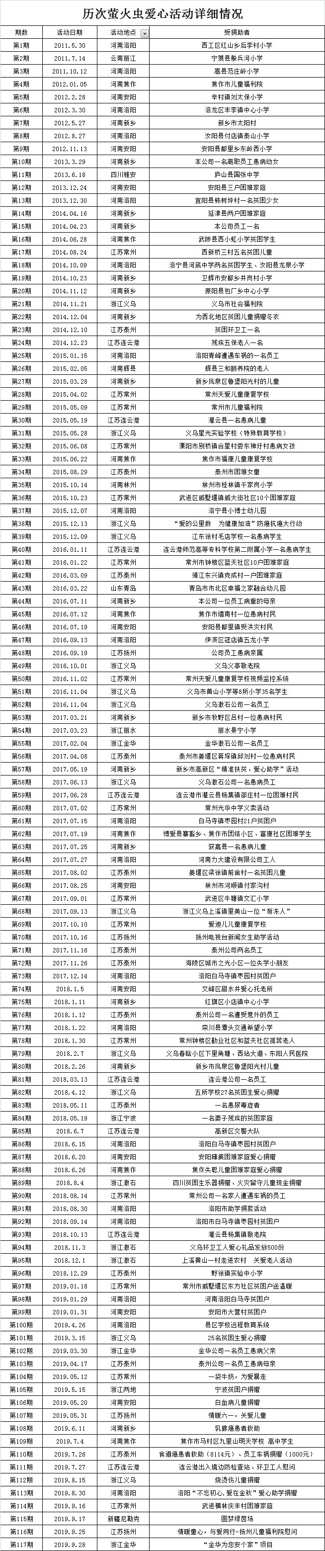 以下為歷次螢火蟲(chóng)愛(ài)心公益活動(dòng)明細(xì):